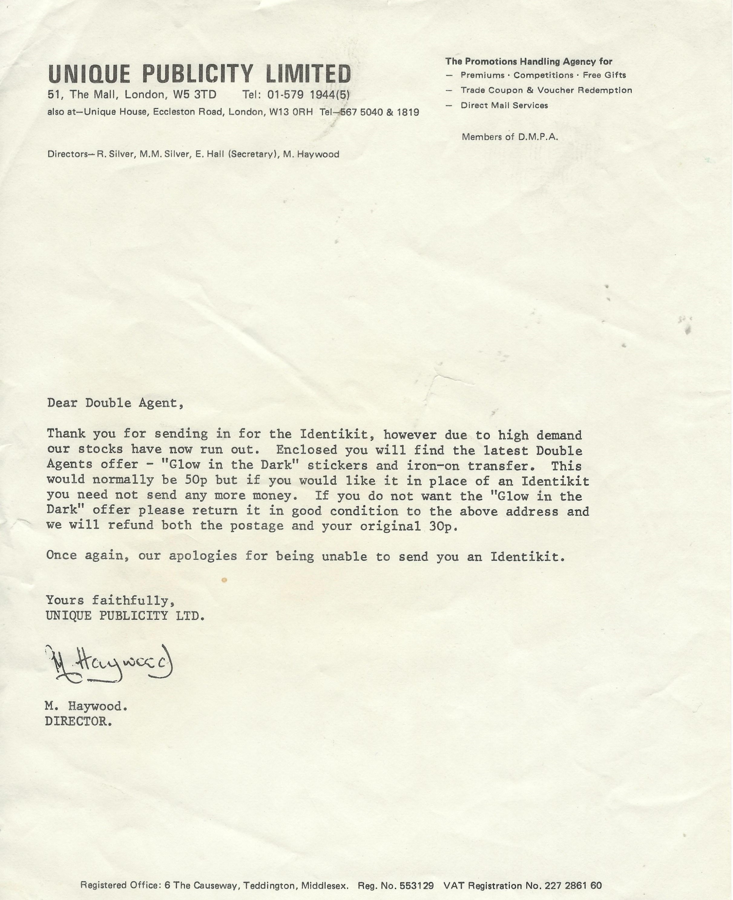 sent to those who missed out on the Identikit, offering in its place the "Glow